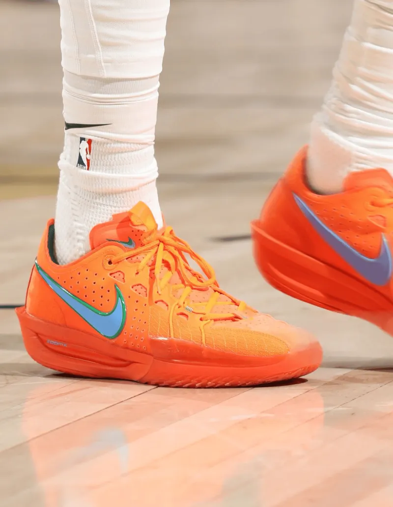 比赛中,普尔上脚橙色Nike G.T Cut3 PE。